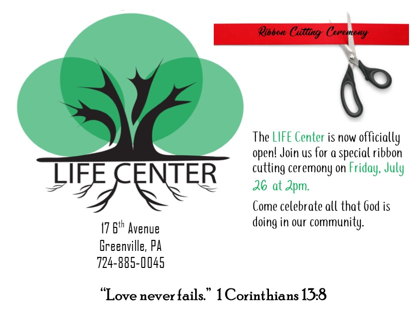 The Thiel College community is invited to a ribbon-cutting ceremony for the LIFE Center, 17 6th Ave, located behind Country Fair. The center will provide programming and fellowship for the Greater Greenville Area.