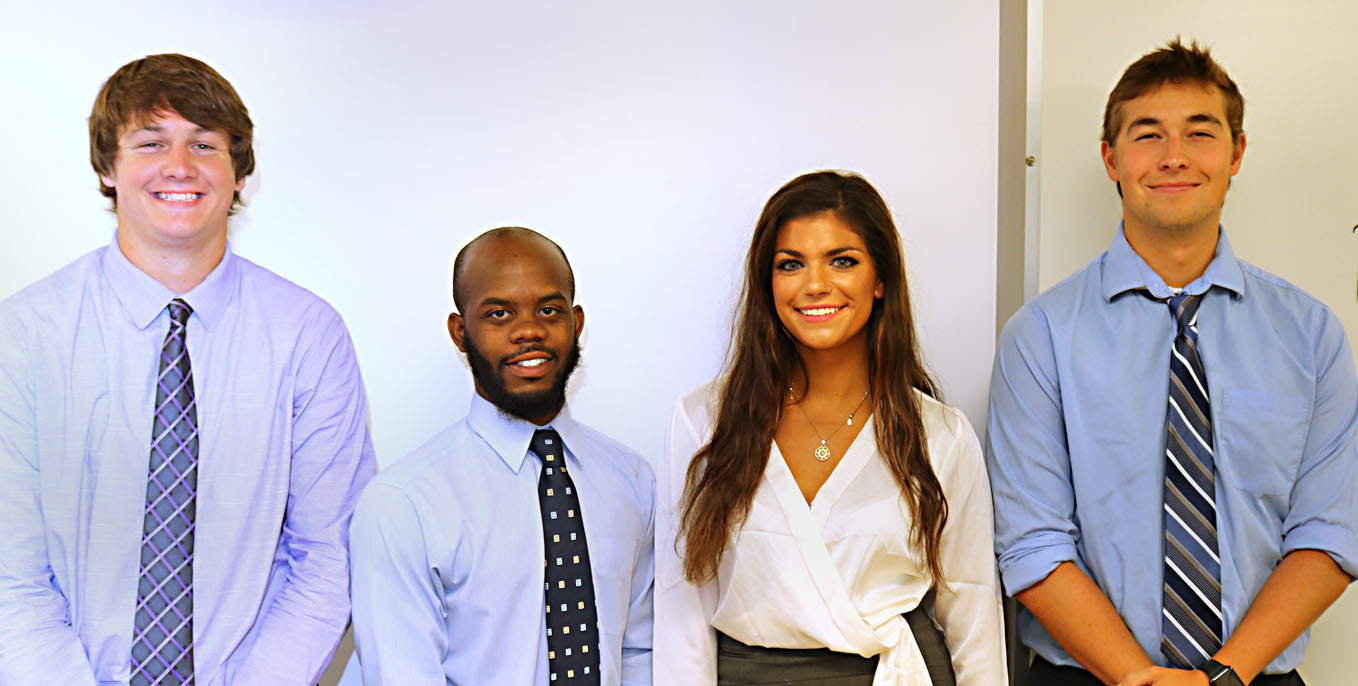 (From L-R) Cole Duskey '19, of Orrville, Ohio, will be student teaching at Jamestown High School; Michel Duncan '20, of Harrisburg, Pa. will be student teaching at Greenville Elementary School; Paige Scherer '19, of Cranberry Township, Pa. will be student teaching at Seneca Valley; and Joshua Evjene '19, of Orrstown, Pa. will be student teaching at Jamestown High School.