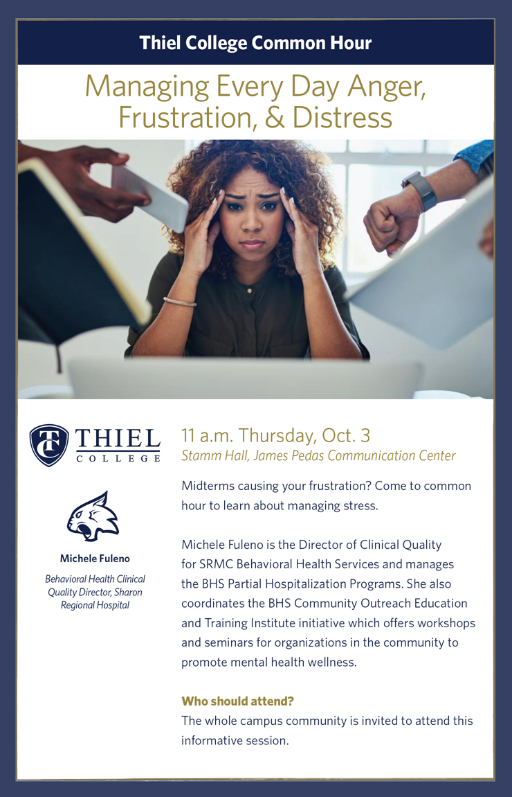 Director of Clinical Quality for Sharon Regional Medical Center Behavioral Health Services Michele Fuleno will discuss ways to manage stress.