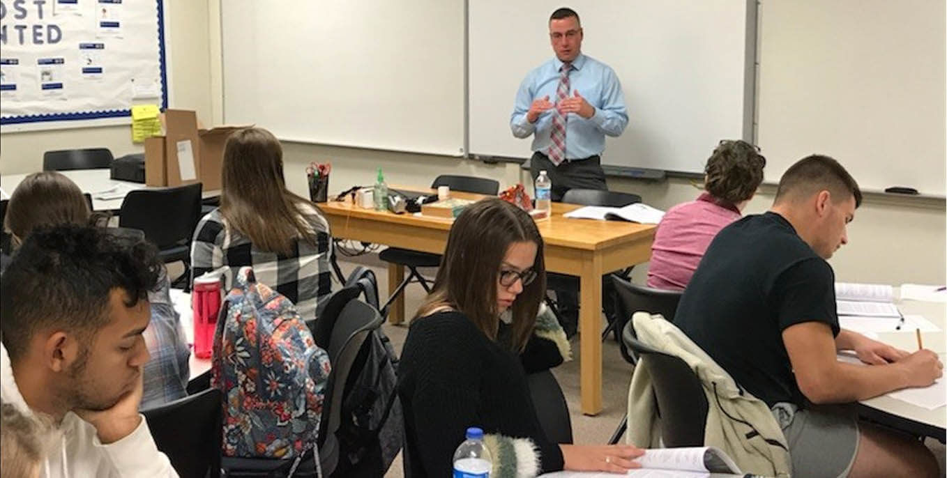 Corry Schachern, Pennsylvania State Education Association UniServ Representative presented in the Foundations of Education class of Professor of Education and Department Chair Doug Hazlett, Ph.D., on Oct. 25.