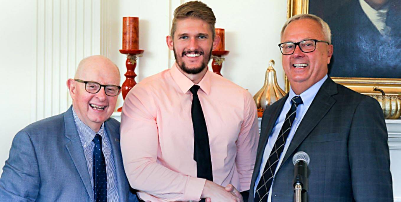 Zawoysky—the retired chief executive officer for Shoe Sensation Inc., a growing 198-plus store, 19-state, family footwear chain based in Jeffersonville, Ind. (near Louisville, Ky.)—was the Haller Enterprise Institute’s Entrepreneur of the Year. Pearce ’20, who started Massive Gains Apparel as a sophomore in high school, was the Haller Enterprise Institute’s Student Entrepreneur of the Year.