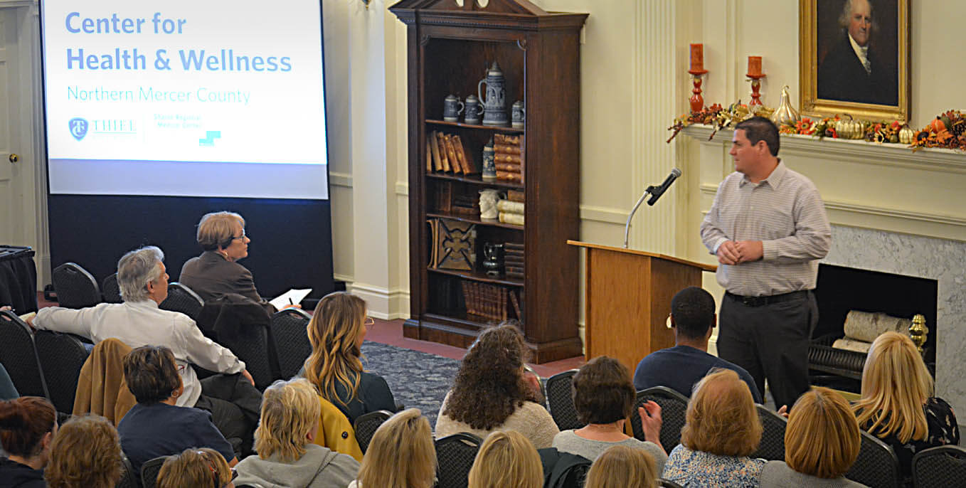 Vice President for Student Life and Dean of Students Michael McKinney ’02 was among the speakers for Tuesday’s Thiel News Time. He spoke about the College’s collaboration with Sharon Regional Medical Center, which is planned to include a health clinic in the Howard Miller Student Center. McKinney said he the clinic could be open to coincide with the students’ return in early January 2020.