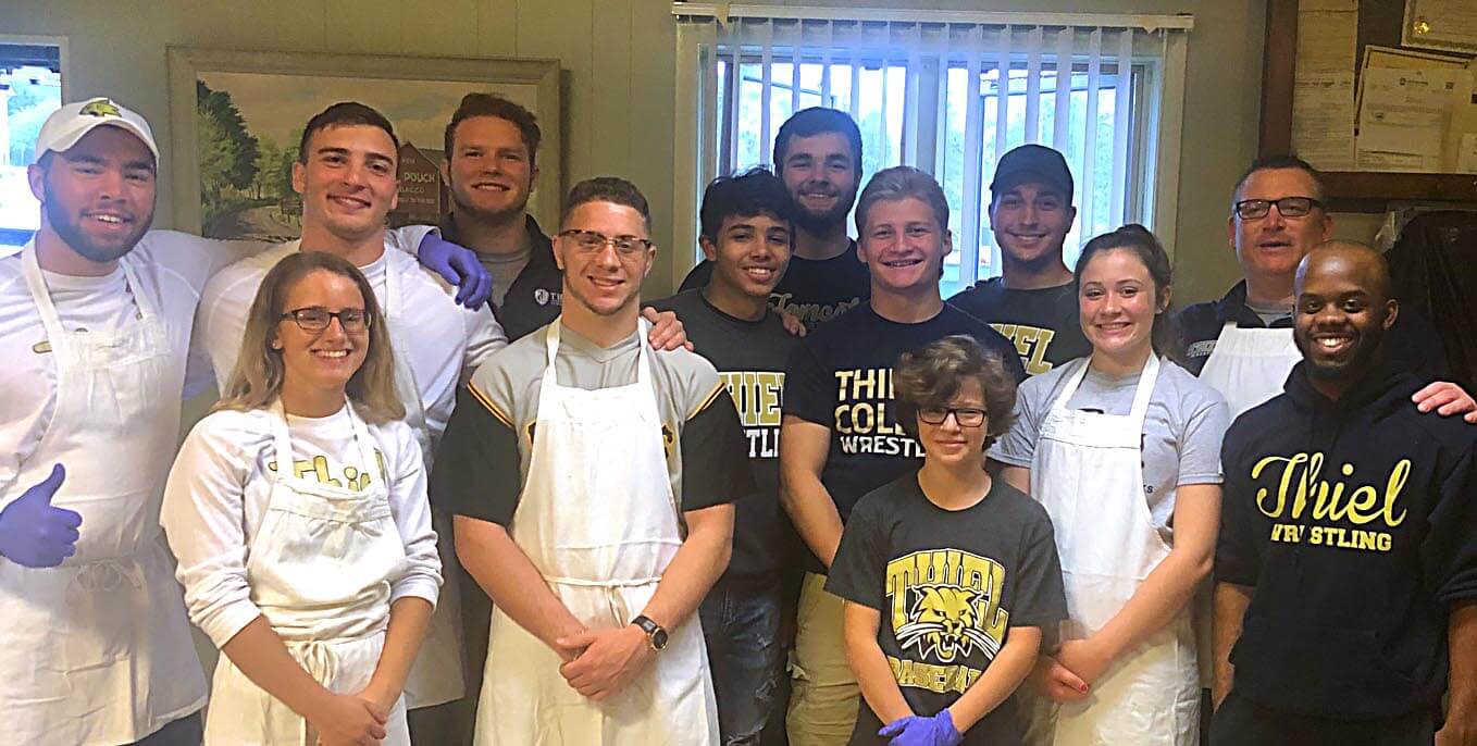 Thiel College wrestlers volunteered at the annual Greenville Lions Club Pancake Day recently.