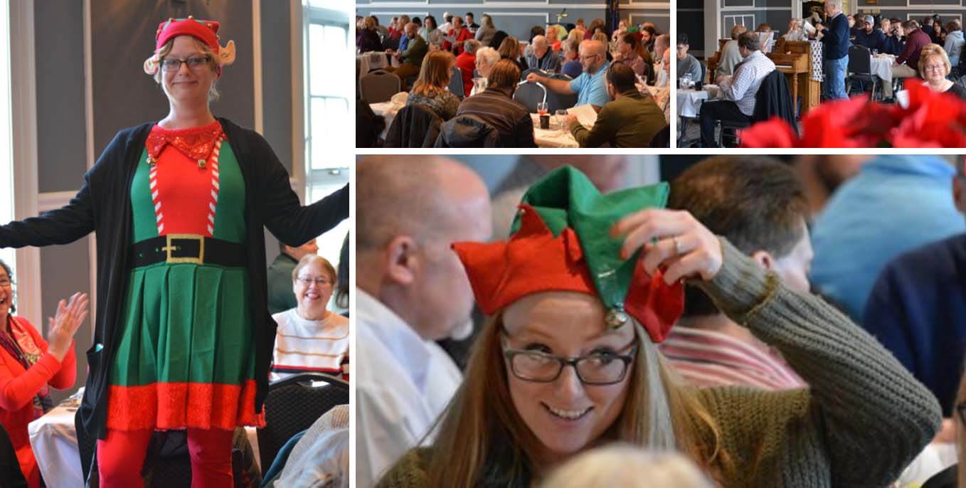 Employees and retirees gathered in the Lutheran Heritage Room of the Howard Miller Student Center on Dec. 12. Employees donated non-perishables to the Good Shepherd Food Pantry. Door prizes of poinsettias and wreaths were also given out.