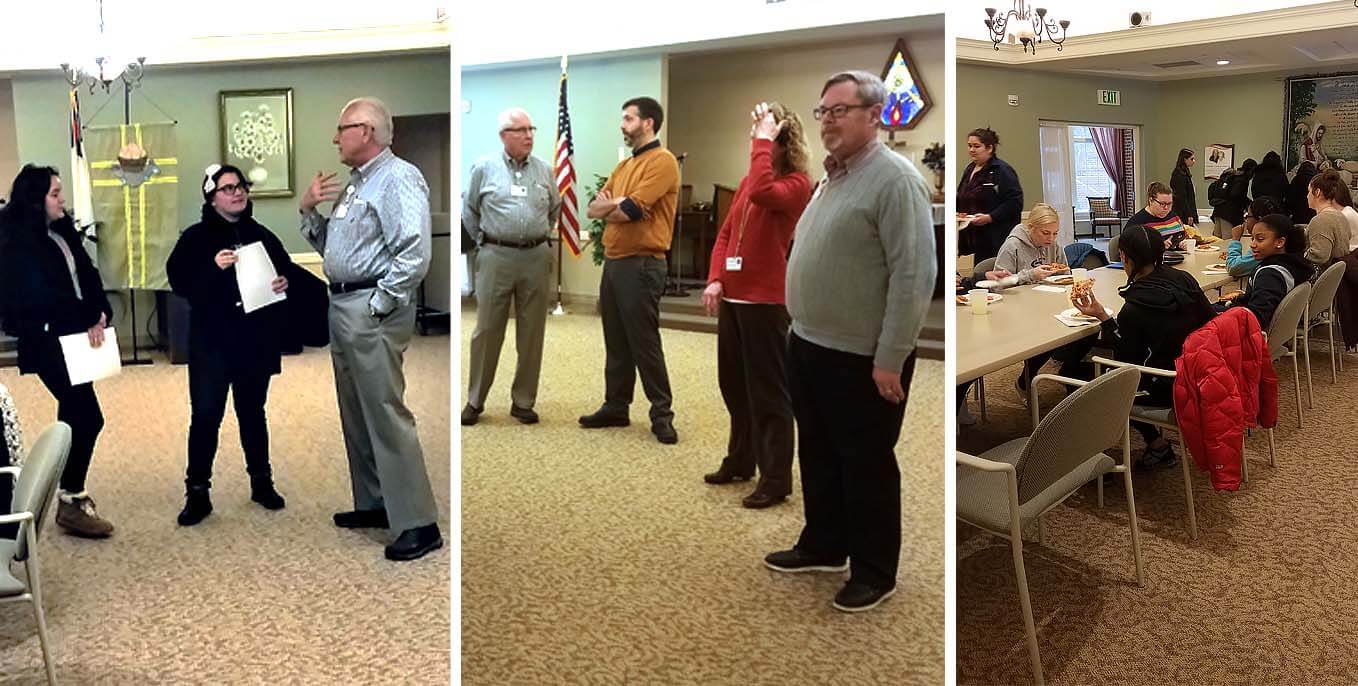 Director of the Career Development Center Clarissa Arbuckle ’11 partnered with Greg Butcher, Ph.D.’s HPI 202 “Trends in Healthcare” class for an off-campus tour of St. Paul’s. During the tour, students learned about opportunities for internships, shadowing, and volunteering. Following a tour of the various neighborhoods within the St. Paul’s community, the students heard from department heads during a lunch and learn networking event. St. Paul’s Medical Director, Dr. Aaron Listopad ’70, an alumnus of the College encouraged students to reach out for shadowing opportunities remarking, “I’m used to having little ducklings around me.”