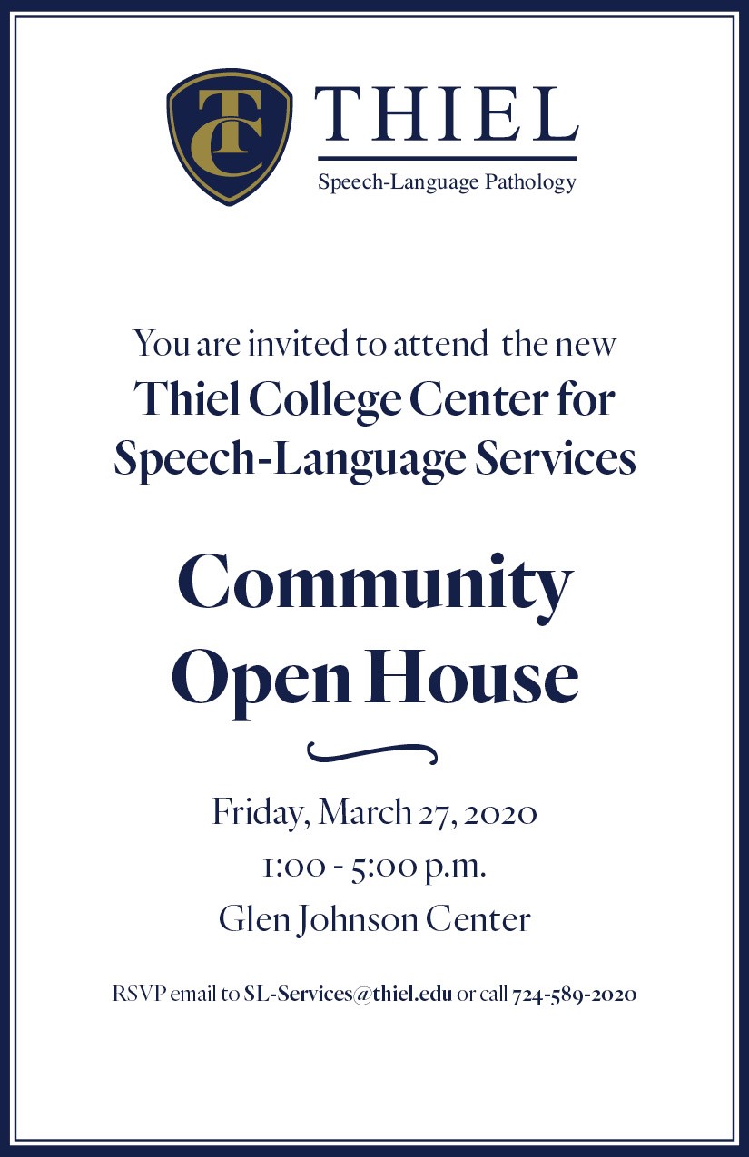 The Center for Speech-Language Services clinic Open House is from 1–5 p.m. March 27 in the Glen Johnson Community Center.