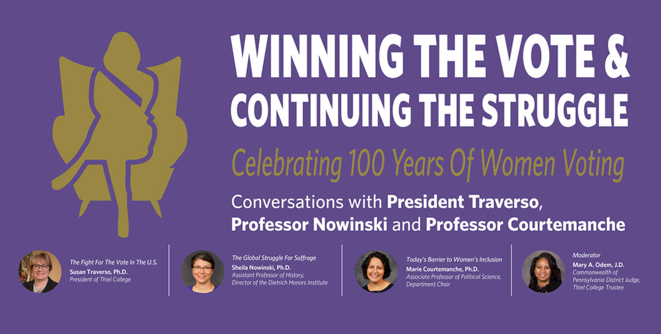 The Thiel College event to feature members of its faculty, administration and Board of Trustees celebrating the 100th anniversary of women’s suffrage in the United States but also discussing the continuing issues women face will take place this fall.
