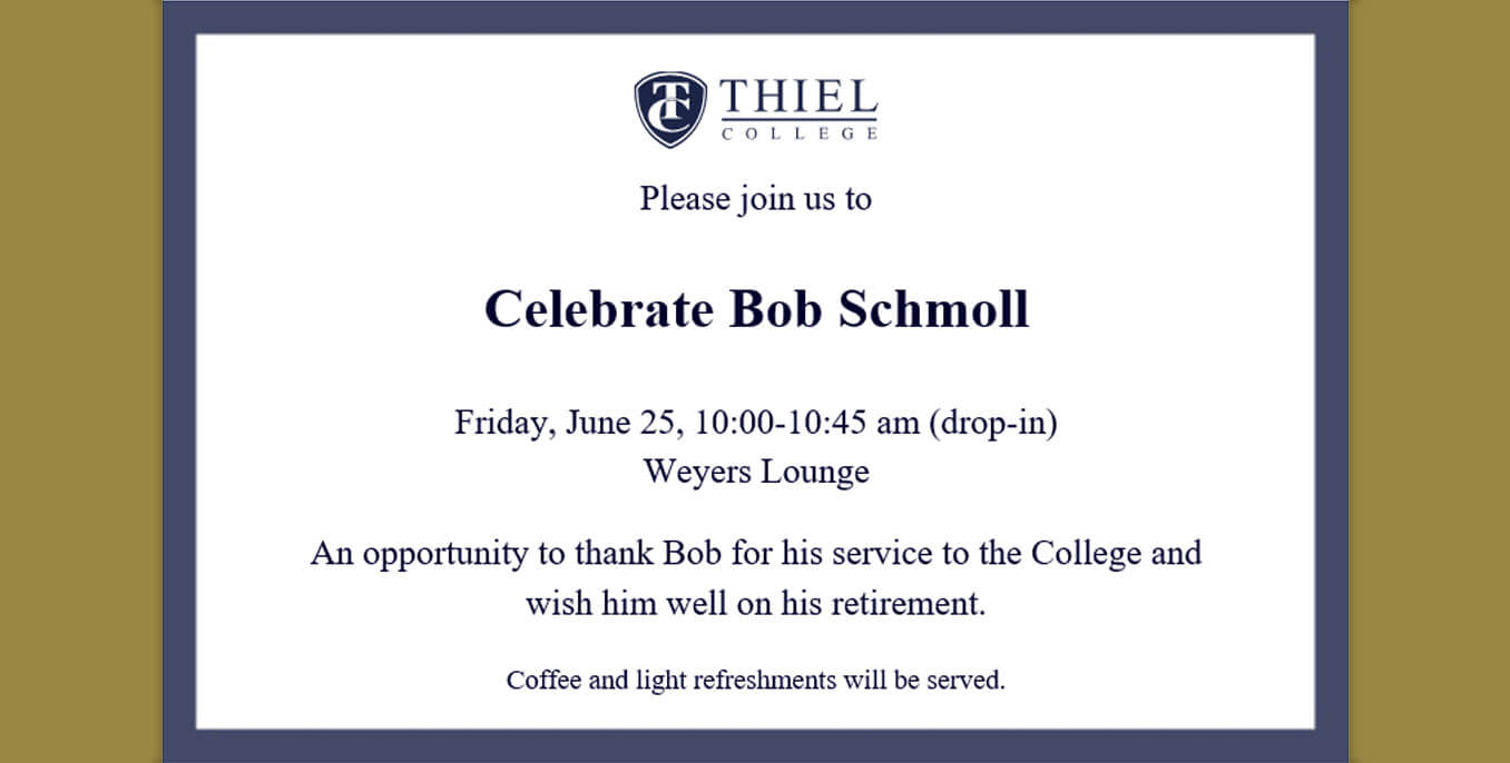 T-Notes is published every other week during the summer. It arrives Wednesday afternoons. The next edition will be out July 7, 2021. Send your event or news to tnotes@thiel.edu by noon Thursday, July 1 to be published in that week’s edition.