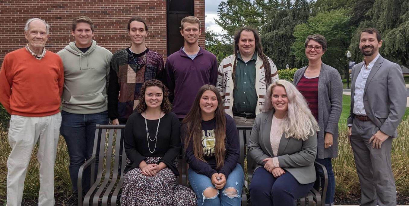 Pictured top row from left: James R. Bloomfield, Ph.D. (Professor Emeritus), Noah Toy ’23, Nathaniel Meth ’23, Logan Pistorius ’22, Jay Donis, Ph.D., Sheila Nowinski, Ph.D. (Faculty Advisor), and Sean Oros ’15; bottom row from left: Julia Langietti ’23, Lindsey Durboraw ’23, and Hannah Uschock ’22.