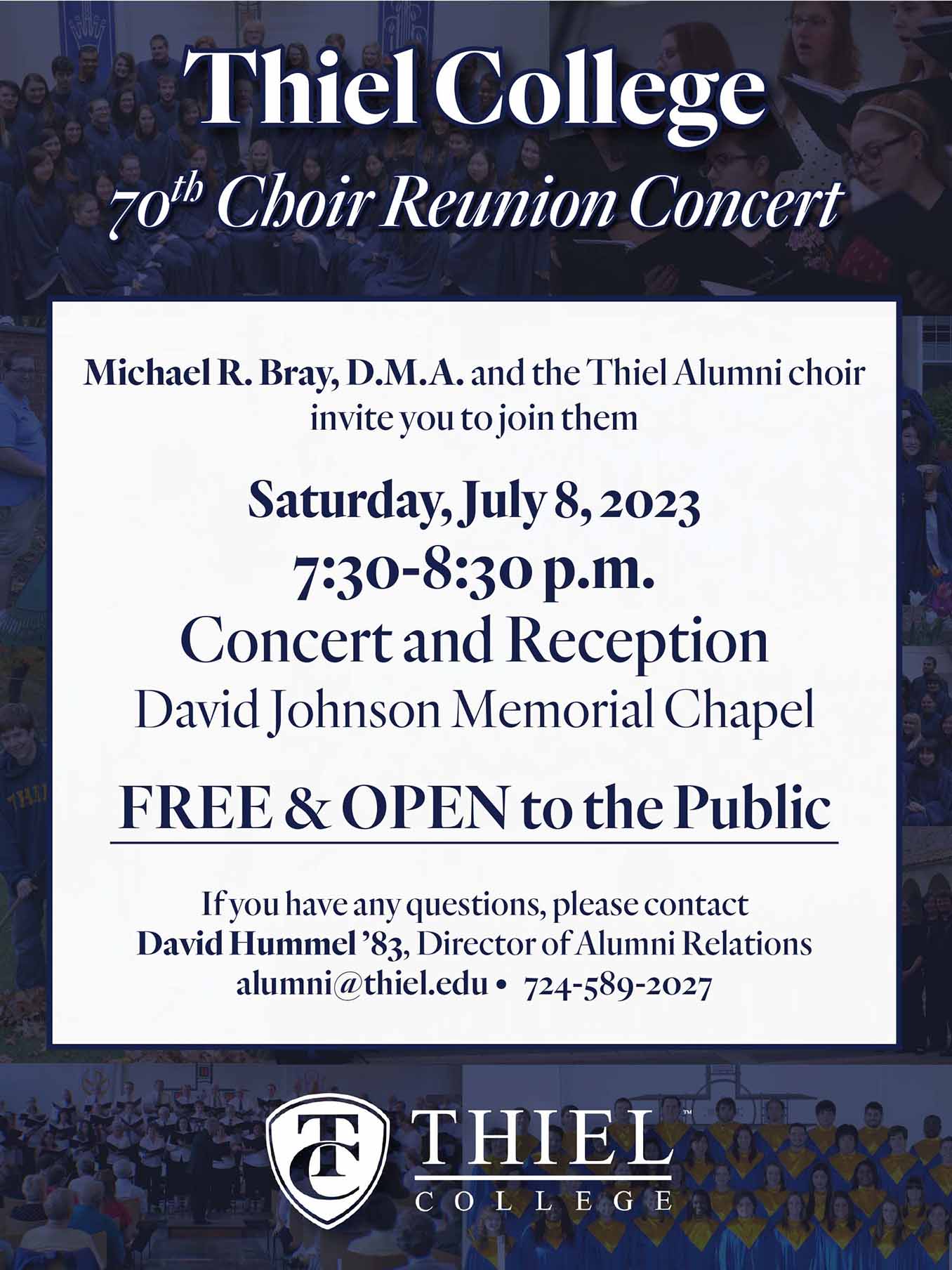 Michael R. Bray, D.M.A. and the Thiel Choir will celebrate and perform at the 70th Choir Reunion.
