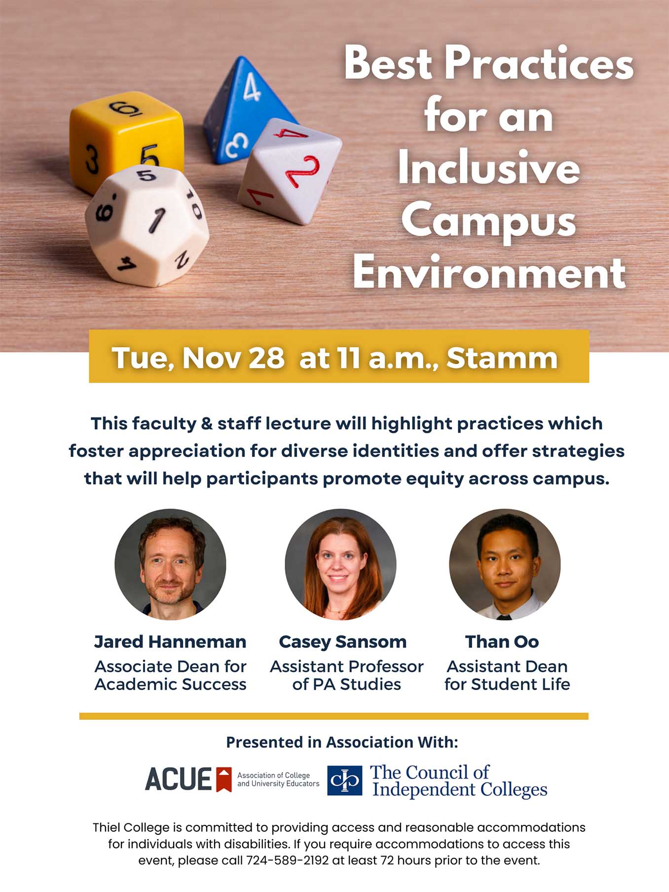 Each semester, “Thiel News Time” (TNT) gatherings are an opportunity to meet as a community and share information as we work together to advance the College. These sessions take place on Tuesdays during community hours when no classes are scheduled allowing faculty to attend together with the College’s staff.