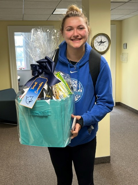 Morgan Popielarcheck ’26, a sophomore exercise science major from Greenville, Pa., won the Tomcat Commuter basket for this month’s Commuter Program. The basket included many useful items such as: a Sheetz gift card, car brush/scraper, car air freshener, a throw blanket, a tumbler, snacks, and many more items.