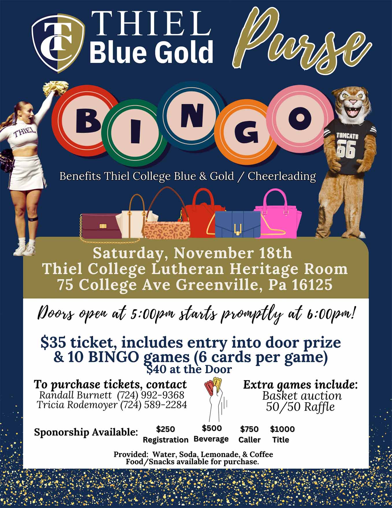 Blue & Gold/Cheer will be hosting a Purse Bingo to help raise funds for Nationals. Bingo starts at 6 p.m.