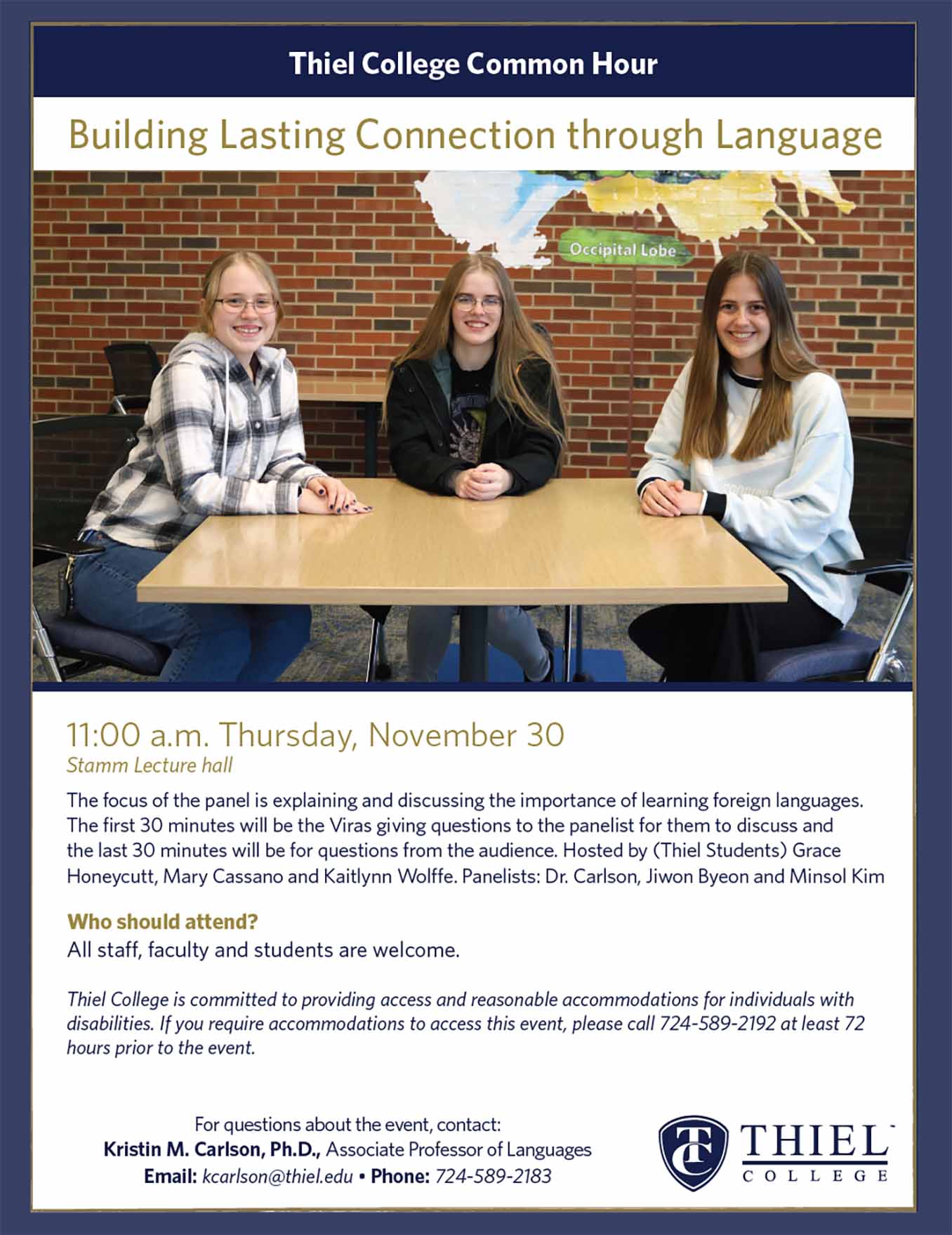 T-Notes is published every week during the academic year. It arrives Wednesday afternoons. The next edition will be out Dec. 6. Send your event or news to tnotes@thiel.edu by noon Monday, Dec. 4 to be published in that week’s edition.