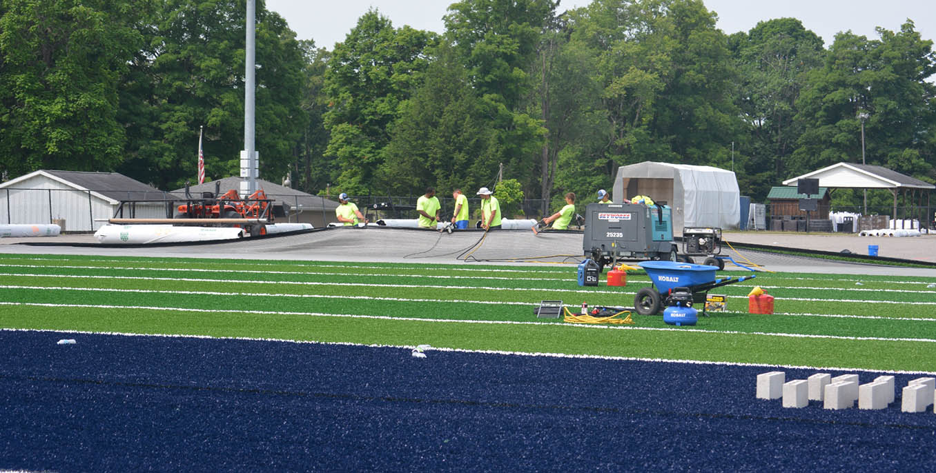 The installation of the new turf began this week at Alumni Stadium. The work is expected to continue through this week and should be complete by next week.