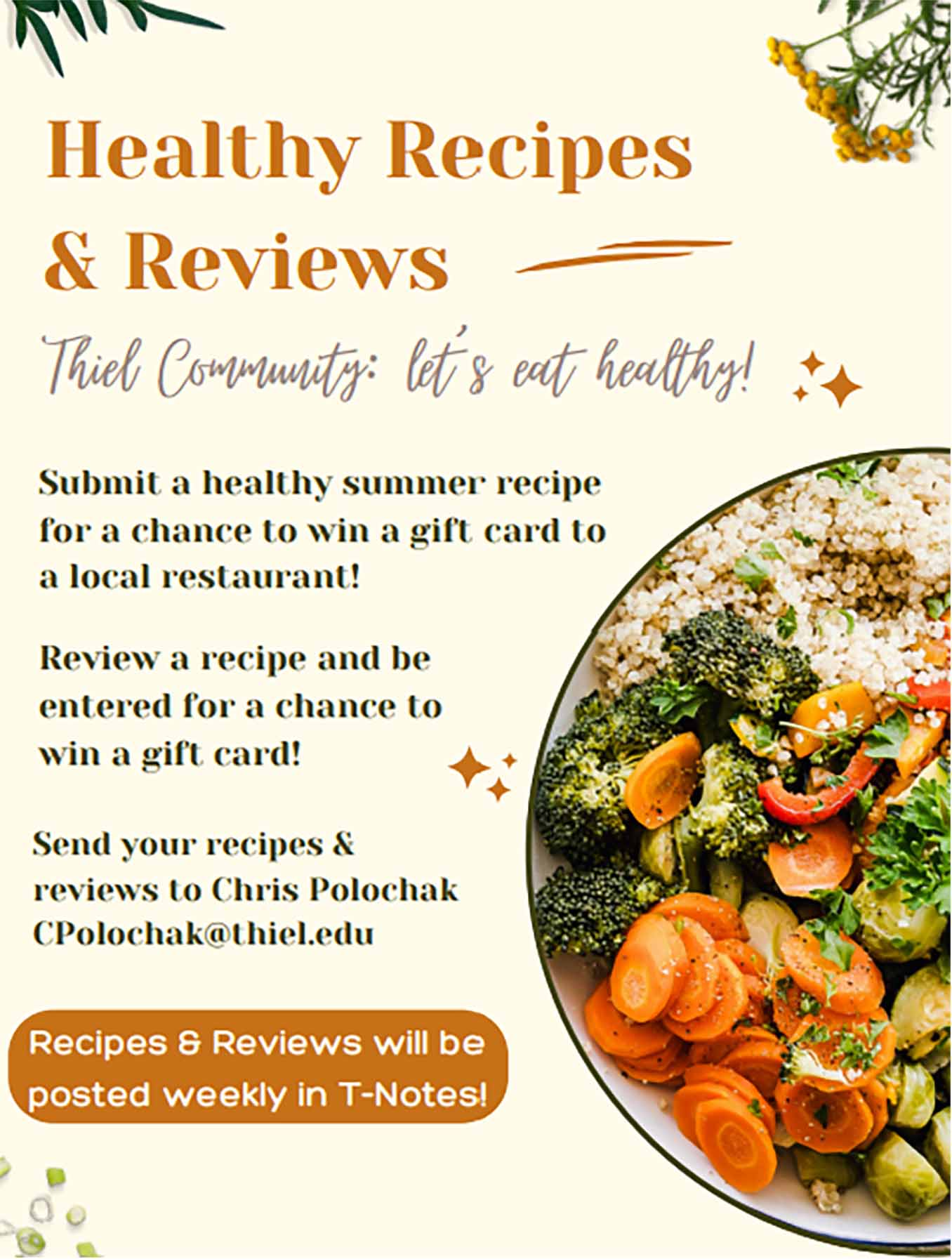 T-Notes is published every other week during the summer break. It arrives Wednesday afternoons. The next edition will be out July 24, 2024. Send your event or news to tnotes@thiel.edu by noon Monday, July 22, 2024 to be published in that week’s edition.