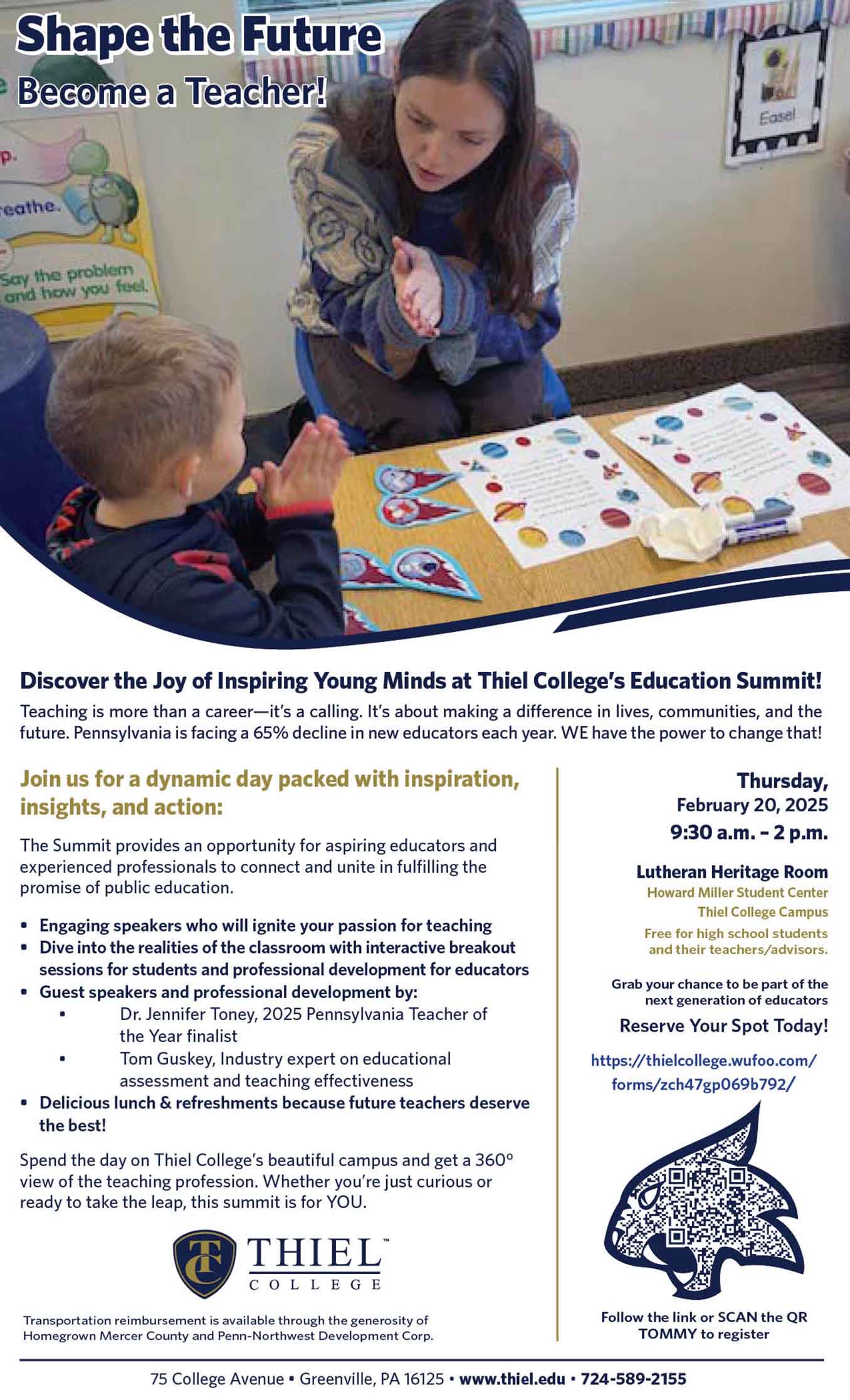 T-Notes is published weekly during the fall and spring semesters. It arrives Wednesday afternoons. Send your event or news to tnotes@thiel.edu by noon Monday, Feb. 17, 2025 to be published in that week’s edition. The next edition will be published Wednesday, Feb. 19, 2025.