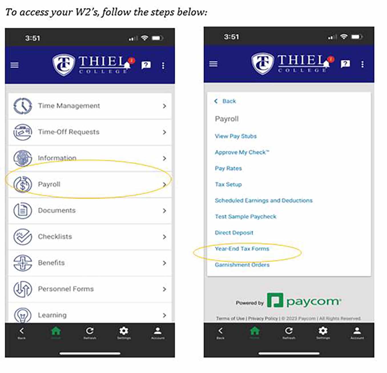 Employees’ W-2s are available in Paycom.