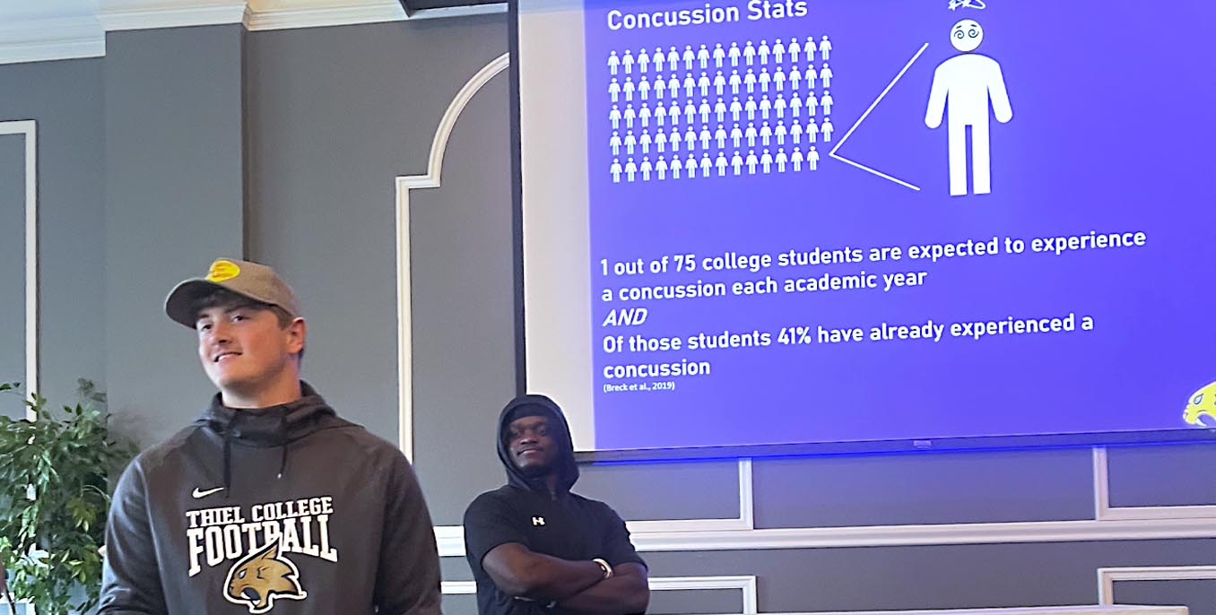The Thiel College Concussion Management Team hosted its second annual Concussion Peer Education Program with the Tomcats football team, following last year’s sessions with Thiel’s soccer and cheerleading teams.