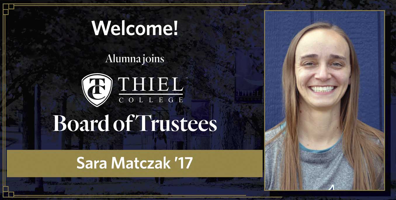 Sara Matczak ’17 was recently appointed to the Thiel College Board of Trustees and will begin her first term in November.