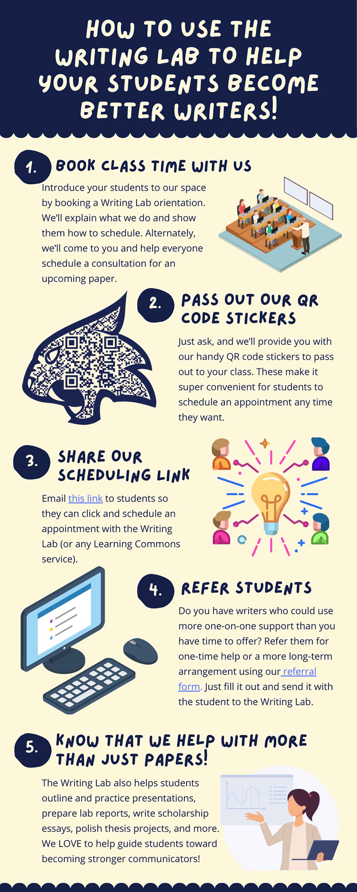 The Learning Commons and the Accessibility Resource Center provide a variety of academic support services designed to enhance student success. Faculty and staff members play an important role in connecting students with these resources and are encouraged to share the following information with students.