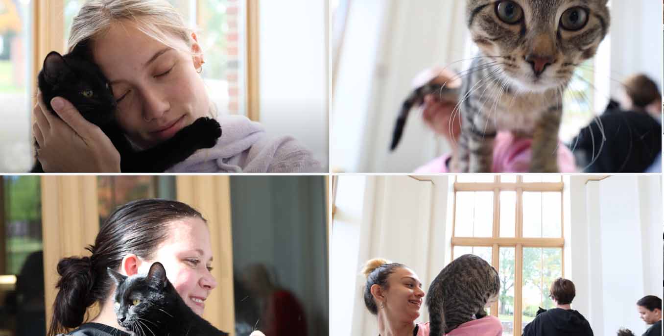 Students hosted a yoga session with therapy cats in David Johnson Memorial Chapel on Monday, blending wellness and stress relief. The event was led by Adrianna Green ’27, Cody Maxwell ’26, and Emily Ripple ’26, with faculty advisor Kristel Gallagher, Ph.D., associate professor of psychology.