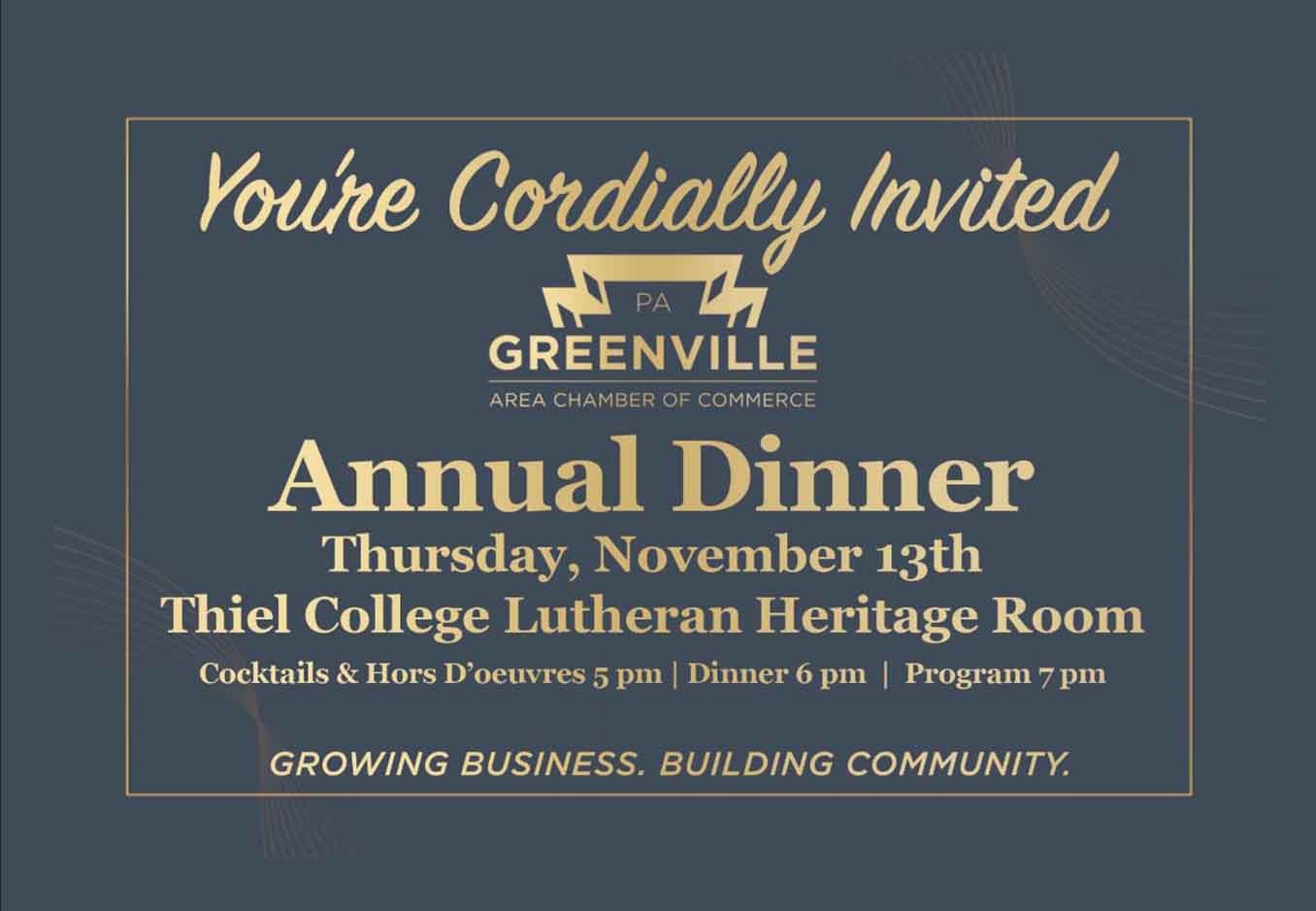 The Greenville Chamber of Commerce will host its annual dinner on Thursday, Nov. 13, in the Lutheran Heritage Room of the Howard Miller Student Center. The event is open to the community. Tickets are $40 per person and include hors d’oeuvres, dinner and two complimentary drinks (cash bar available).
