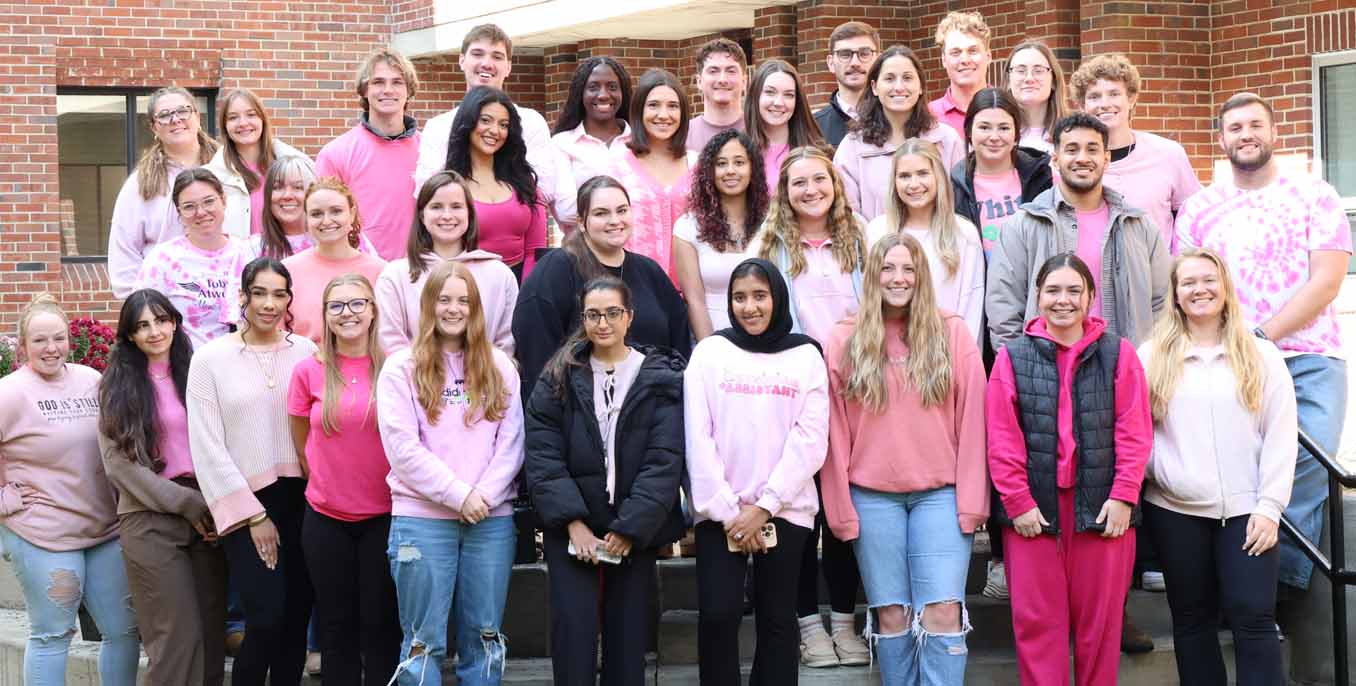 The Physician Assistant program gathered students for a pink out photo in support of Breast Cancer Awareness Month on Tuesday. Students in the nursing and speech-language pathology programs also donned pink on Tuesday.
