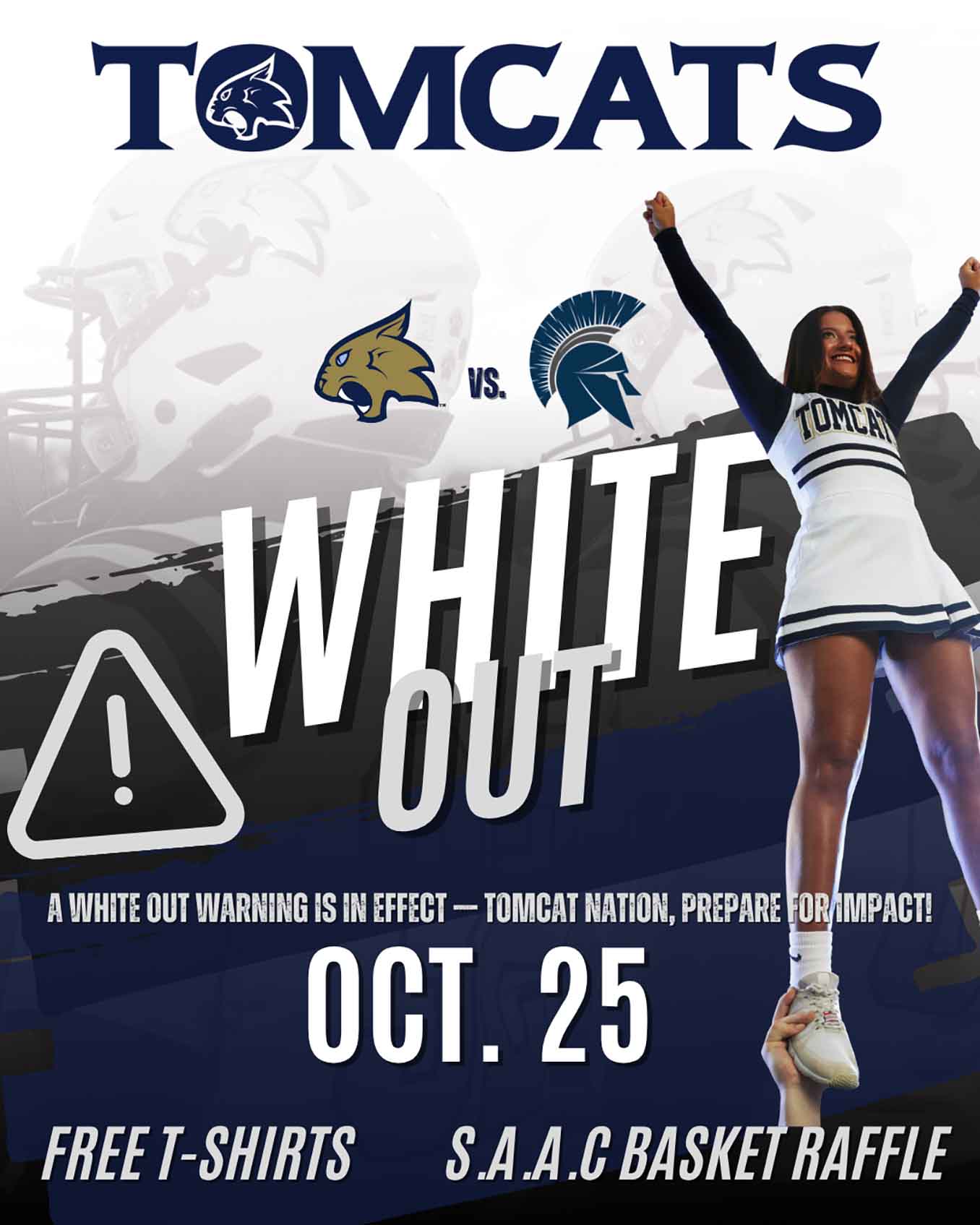 Free White Out T-shirts will be handed out to students and staff during Common Hour at 11:30 a.m. Thursday leading up to the game. In addition, the Student-Athlete Advisory Committee will be hosting a basket raffle during the game.