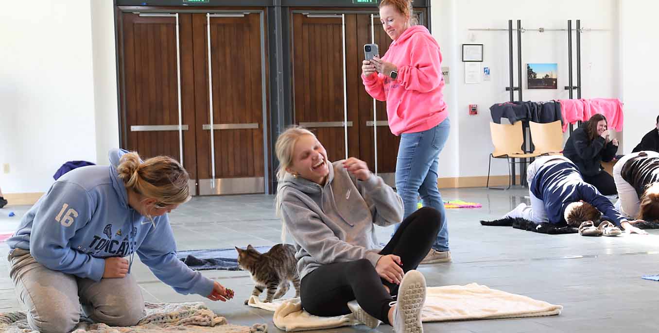 Thiel College psychology students hosted a “Cat Yoga” session in the David Johnson Memorial Chapel on October 20, blending wellness, stress relief, and community service.