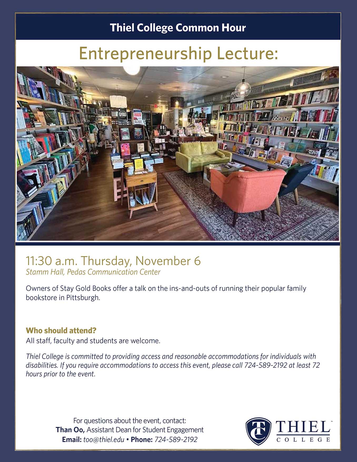 T-Notes is published Wednesdays during the academic year. Send your event or news to tnotes@thiel.edu by noon Monday, Nov. 10, 2025 to be published in that week’s edition. The next edition will be published Wednesday, Nov. 12, 2025.