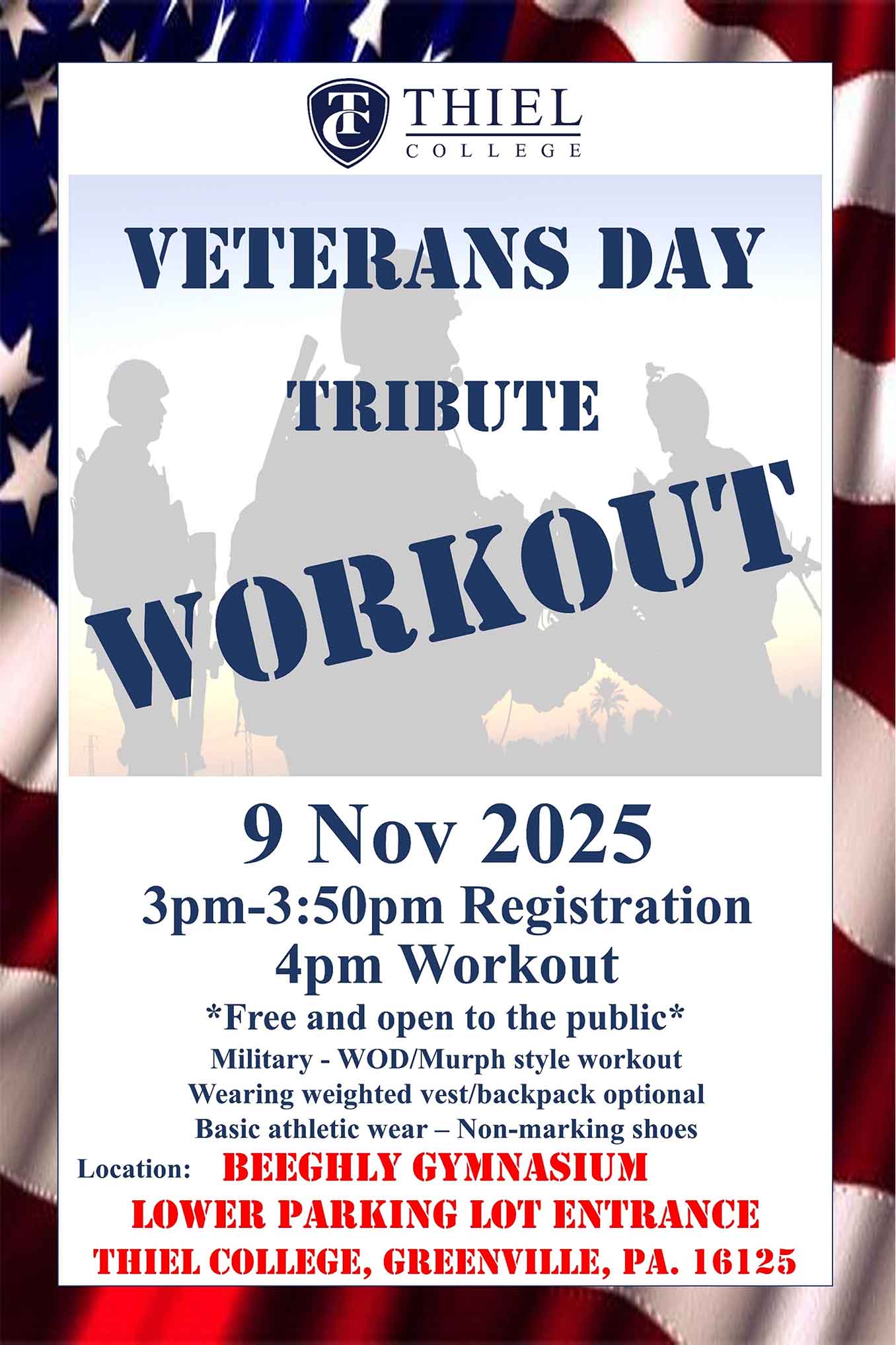 A military-style tribute workout will be held in honor of Veterans Day. Open to the campus and community.