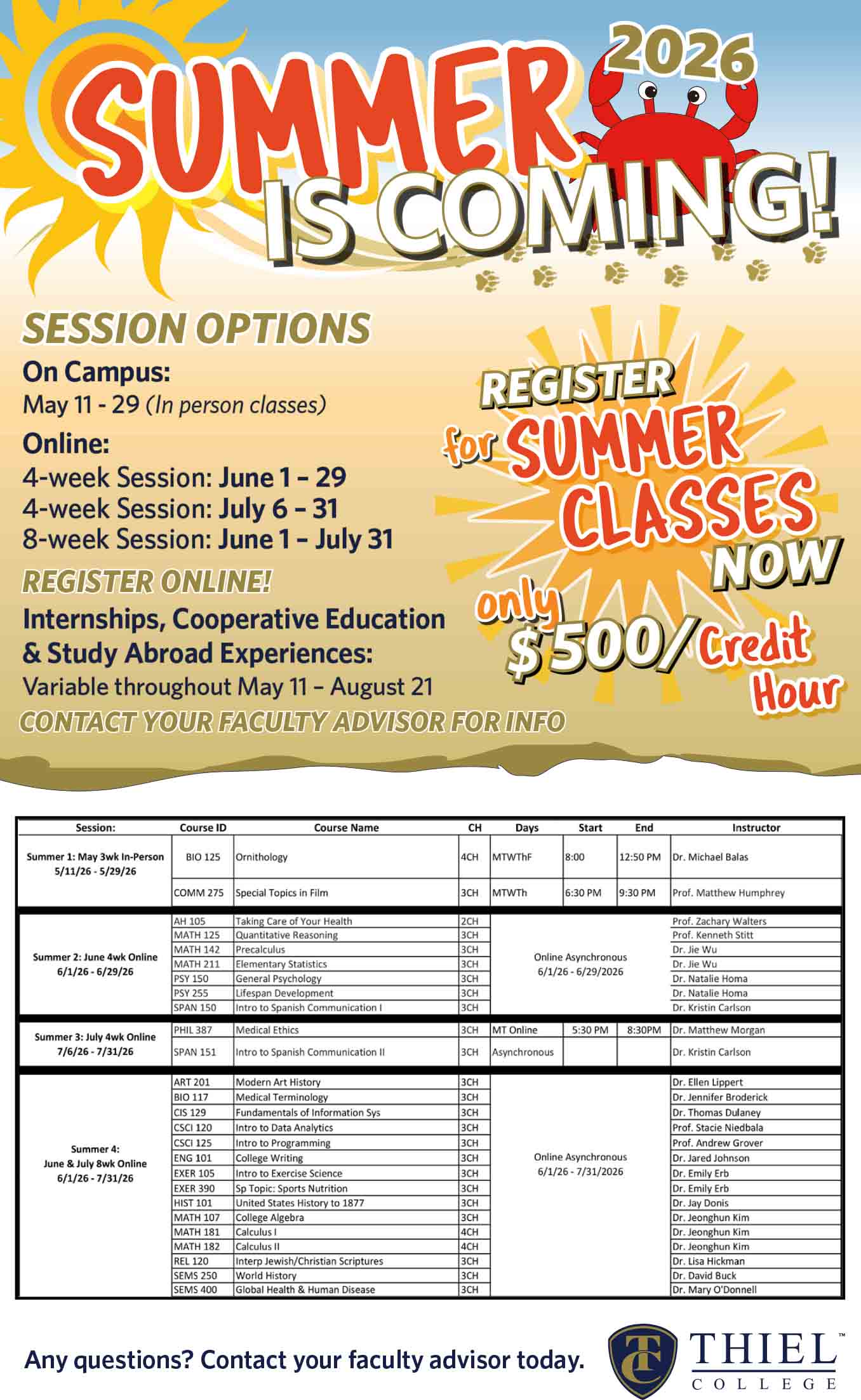 T-Notes is published Wednesdays during the academic year. Send your event or news to tnotes@thiel.edu by noon Monday, March 23, 2026 to be published in that week’s edition. The next edition will be published Wednesday, March 25, 2026.