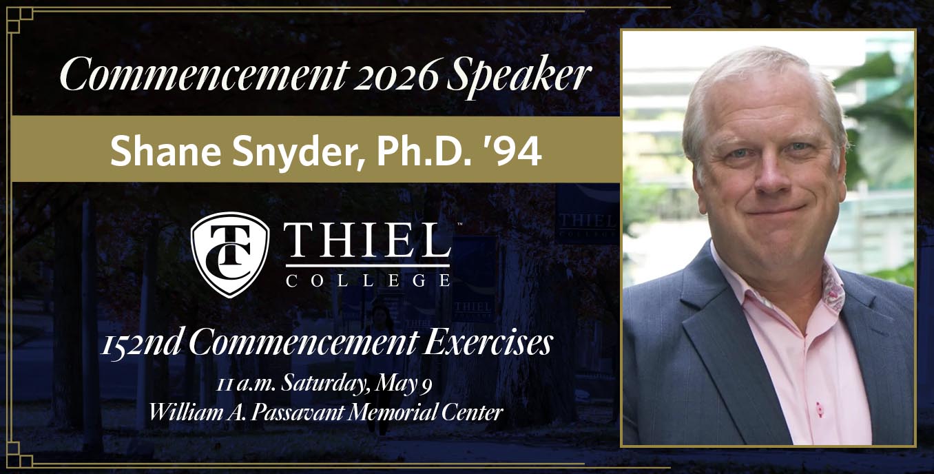 Internationally recognized water researcher Shane Snyder, Ph.D. ’94 will deliver the commencement address and receive an Honorary Doctor of Science degree during Thiel College’s 2026 Commencement ceremony on Saturday, May 9.